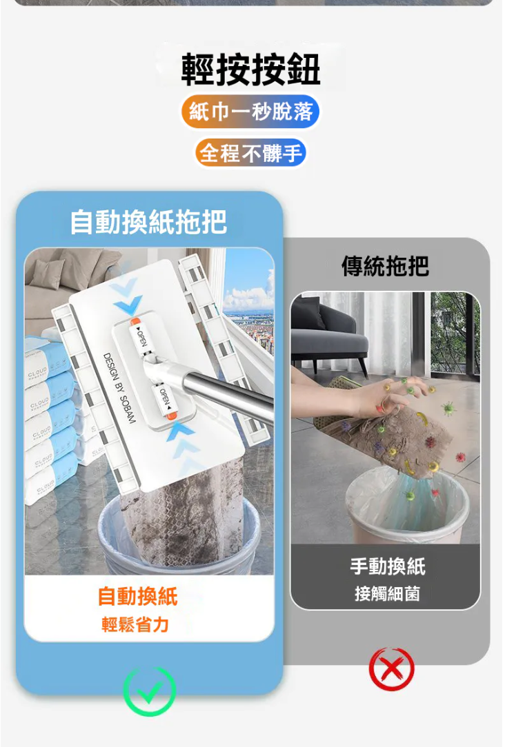 12分鐘前【台灣爆紅款 現貨秒發】3秒快速換布,免手洗超衛生,360度旋轉拖頭,深入縫隙無死角,磁磚、木地板都適用! - 【嘗鮮套餐】2入組-NT$980